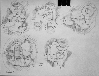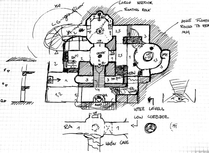 When I got an email from a famous Quake level designer Ferdinand ‘Cityy’ List asking if I want to team up with him to take part in the upcoming mapping (level making) contest - I did not hesitate to say yes! We set out to create two maps for a new video game Diabotical together. Right away I started with making drawings of a layout for the first map (1v1 mode) which we called Amberfall. All my sketches became obsolete when Cityy came out with his drawing of the layout... it looked extremely enigmatic.